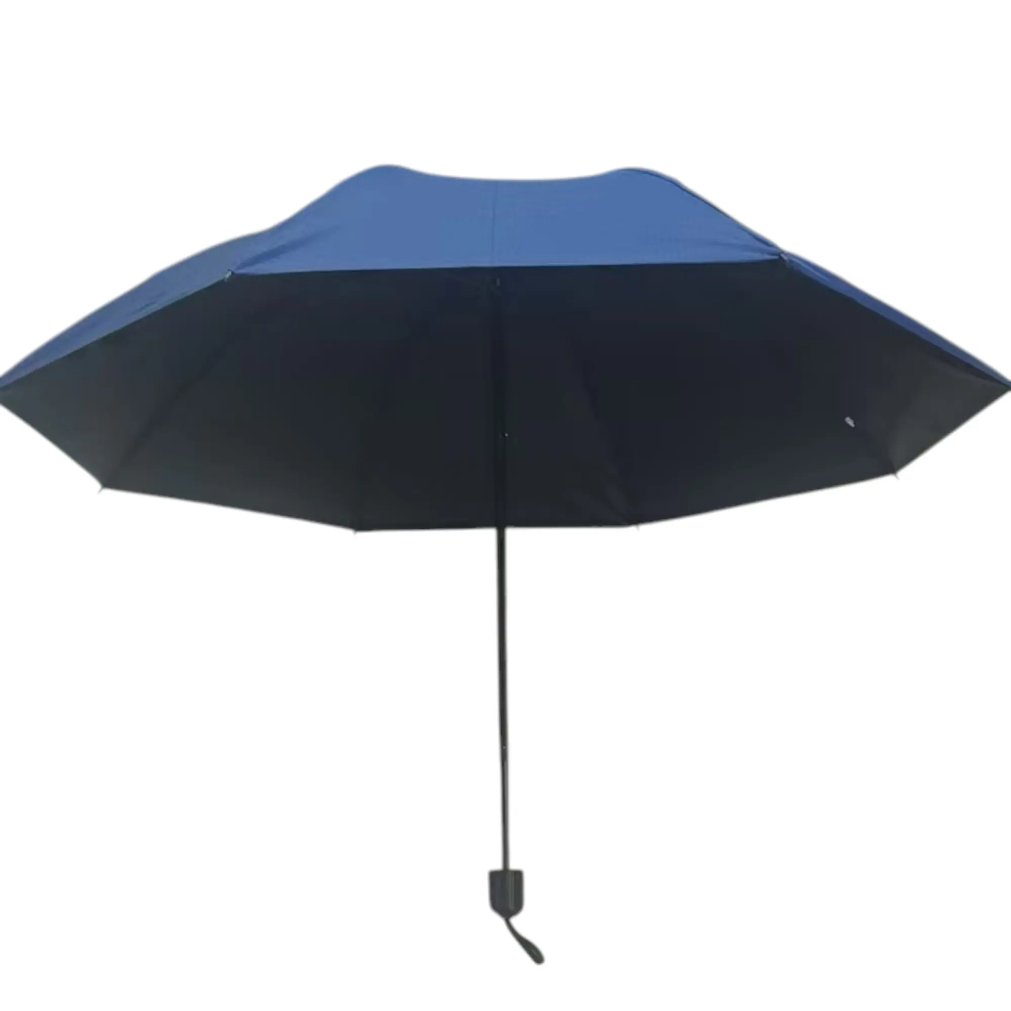 Custom options available. This blue umbrella, made by trusted Chinese manufacturers, offers a sleek design. Its compact folded size makes it portable, while the open size provides good coverage. It balances convenience and quality perfectly.